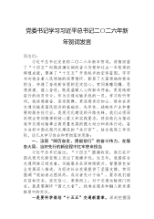 在理论学习中心组学习领会习近平总书记二〇二六年新年贺词精神时的讲话同志们:今天,我们召开市总工会党组理论学习中心组第1次学习(扩大)会,机关全体干部职工齐聚一堂,主要目的是深入学习领会习近平总书记二〇二六年新年贺词精神,认真贯彻落实近期中央、自治区和市委重要文件精神,研究部署市总工会下一阶段工作。刚才,会议已经传达了相关文件精神,听取了部分同志的发言,大家交流了初步学习体会,认识深刻,气氛热烈。下面,我结合自己的学习思考就全市工会系统如何深入学习领会、全面贯彻落实习近平总书记新年贺词精神,讲几点意见。一、锚定新坐标新年贺词虽仅千余言,却字字千钧,意蕴深远,既是对过往奋斗的深情回望,更是面向未来...