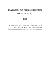 X集团股份有限公司2025年度民主生活会领导班子对照检查材料(精品)根据XX党委的统一部署和集团公司党委的工作安排,本次民主生活会紧扣“深入学习贯彻习近平新时代中国特色社会主义思想,全面贯彻落实党的二十届三中、四中全会精神,深入贯彻落实习近平总书记重要讲话和重要指示批示精神,以打攻坚战、持久战的决心和恒心,锲而不舍落实中央八项规定精神,推进作风建设常态化长效化,以优良作风凝心聚力、真抓实干,聚焦高质量发展首要任务,扎实推进中国式现代化,为实现“十五五”良好开局奠定坚实基础”这一主题。会前,领导班子成员通过个人自学与集中研讨相结合的方式,深入学习了党的二十大和二十届三中、四中全会精神,认真研读了...