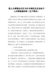 XX街道办事处主任2025年度民主生活会个人对照检查材料(精品)根据区委关于召开2025年度民主生活会的统一部署和要求,我紧扣本次民主生活会主题,在深入学习领会习近平新时代中国特色社会主义思想、党的二十届三中、四中全会精神以及习近平总书记重要讲话和重要指示批示精神的基础上,特别是围绕锲而不舍落实中央八项规定精神、推进作风建设常态化长效化的要求,通过群众提、自己找、上级点、互相帮等多种方式,广泛征求意见建议,并与班子成员深入开展谈心谈话。在此基础上,我严格对照“五个带头”方面内容,深挖思想根源,认真查摆自身存在的突出问题,深刻剖析原因,明确了今后的努力方向和整改措施。现将个人对照检查情况报告如下...