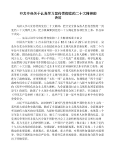 中共中央关于认真学习宣传贯彻党的二十大精神的决定为深入学习宣传贯彻党的二十大精神,把全党全国各族人民的思想统一到党的二十大精神上来,把力量凝聚到党的二十大确定的各项任务上来,作出如下决定。一、充分认识学习宣传贯彻党的二十大精神的重大意义中国共产党第二十次全国代表大会于10月16日至22日在北京举行。这是在全党全国各族人民迈上全面建设社会主义现代化国家新征程、向第二个百年奋斗目标进军的关键时刻召开的一次十分重要的大会,是一次高举旗帜、凝聚力量、团结奋进的大会。大会高举中国特色社会主义伟大旗帜,坚持马克思列宁主义、毛泽东思想、邓小平理论、“三个代表”重要思想、科学发展观,全面贯彻习近平新时代中国特...