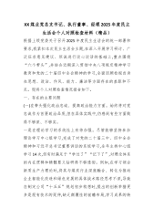 XX街道综合行政执法队队长2025年度民主生活会个人对照检查材料(五个带头)根据XX区纪委、区委组织部关于召开2025年度党员领导干部民主生活会的通知要求,我紧扣本次民主生活会主题,在深入学习领会党的二十届三中、四中全会精神和习近平总书记重要讲话精神,特别是关于作风建设的重要论述的基础上,通过群众提、自己找、上级点、互相帮等多种方式,广泛征求意见建议,并与班子成员、分管领域同志深入开展谈心谈话。在此基础上,我严格对照“五个带头”的具体要求,紧密联系个人思想、工作和生活实际,深入查摆自身存在的突出问题,深刻剖析问题产生的根源,并明确了今后的努力方向和整改措施。现将个人对照检查情况报告如下。一、存...