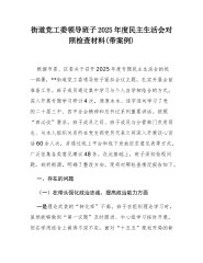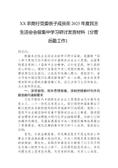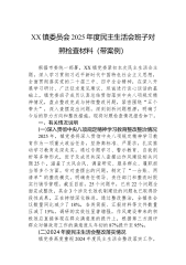 XX管理所党支部班子2025年度组织生活会对照检查材料(六个对照)按照《中共泰兴市水务局党组关于召开2025年度基层党组织组织生活会和开展民主评议党员的通知》要求,XX管理所党支部紧紧围绕“深入学习贯彻习近平新时代中国特色社会主义思想,全面贯彻落实党的二十届四中全会精神,以打攻坚战、持久战的决心和恒心,锲而不舍落实中央八项规定精神,推进作风建设常态化长效化”这一主题,认真组织开展会前学习、广泛征求意见、深入谈心谈话,对照加强理论武装、执行上级组织决定、严格组织生活、加强党员管理监督、做好群众工作、抓好自身建设等6个方面,深入查摆问题、剖析原因、明确整改方向。现将有关情况报告如下。一、存在的主要...