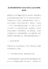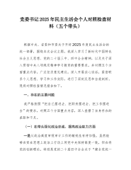 区委常委、区委宣传部长2025年度民主生活会个人对照检查发言材料(五个带头)根据区委关于召开2025年度民主生活会的统一部署,我紧扣会议主题,通过集中学习、专题研讨、基层走访、谈心谈话等方式,深入学习党的二十大及历次全会精神、习近平新时代中国特色社会主义思想特别是习近平文化思想,广泛征求各方意见建议。对照“五个带头”要求,结合自身思想、岗位职责和工作实际,进行深刻自我剖析,现将对照检查情况汇报如下:一、存在的主要问题(一)带头强化政治忠诚,提高政治能力方面。一是政治判断力不够敏锐。宣传思想工作本质上是政治工作,但在实际推进中,有时存在“就业务抓业务”的惯性思维,对一些文化活动、宣传载体背后蕴含...