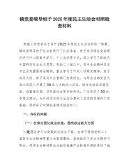 统计调查中心书记2025年度民主生活会个人对照检查材料(五个带头)根据本次民主生活会主题要求,本人紧扣深入学习贯彻新时代中国特色社会主义思想,全面贯彻落实党的二十届三中、四中全会精神,锲而不舍落实中央八项规定精神、推进作风建设常态化长效化等核心内容,在深入学习研讨、广泛征求意见、开展谈心谈话的基础上,严格对照五个方面重点内容,紧密结合个人思想、学习和工作实际,深入查摆突出问题,深刻剖析思想根源,明确整改方向和措施。现将个人对照检查情况报告如下。一、存在的主要问题(一)在带头强化政治忠诚、提高政治能力方面一是理论学习的深度和转化效果有待加强。虽然能够坚持参加中心组学习、专题研讨,及时跟进学习党的...