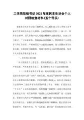 大学领导班子成员2025年度民主生活会个人对照检查材料(五个带头)按照学校党委关于召开2025年度民主生活会的统一部署和要求,我紧扣本次民主生活会主题,会前系统学习了习近平新时代中国特色社会主义思想,深入领会了党的二十届三中、四中全会精神和习近平总书记关于党的建设的重要思想,并结合近期关于深入贯彻中央八项规定精神的专题学习教育,广泛征求了分管领域和基层联系点的意见建议,与班子成员、分管部门负责同志深入开展了谈心谈话。在此基础上,我严格对照“带头强化政治忠诚、提高政治能力”“带头固本培元、增强党性”“带头敬畏人民、敬畏组织、敬畏法纪”“带头干事创业、担当作为”“带头坚决扛起管党治党责任”等五个方...