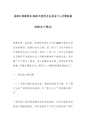 县委办公室机关党支部2025年度组织生活会班子对照检查材料(五个对照)根据县委关于召开2025年度基层党组织组织生活会的统一部署和要求,县委办公室机关党支部委员会在深入组织学习、广泛征求意见、普遍开展谈心谈话的基础上,紧紧围绕本次组织生活会主题,聚焦党员身份本色、岗位履职实效、作风建设细节,对照《中国共产党章程》规定的党员义务和权利,对照新时代合格党员标准,深入查摆了在贯彻党的创新理论、加强党性锤炼、联系服务群众、发挥先锋模范作用、改作风树新风等方面存在的突出问题,深刻剖析了问题产生的根源,并研究制定了下一步的整改措施。现将班子对照检查情况报告如下。一、上年度组织生活会检视问题整改落实情况在2...