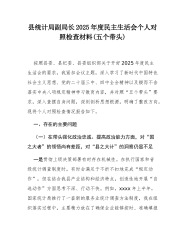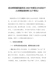 县自然资源局副局长2025年度民主生活会个人对照检查材料(五个带头)根据县委关于召开2025年度民主生活会的统一部署和要求,本人在深入学习领会党的二十届三中、四中全会精神,特别是近期关于深入贯彻中央八项规定精神学习教育的基础上,紧扣会议主题,通过群众提、自己找、上级点、互相帮等多种方式,广泛征求意见建议,并与班子成员深入开展谈心谈话。在此基础上,我围绕“五个带头”要求,深入查摆自身存在的差距和不足,深刻剖析问题根源,明确了今后的努力方向和整改措施。现将个人对照检查情况报告如下。一、存在的主要问题(一)在带头强化政治忠诚、提高政治能力方面一是在融会贯通上存在差距,对上级精神的“本土化”研究不深。...