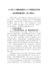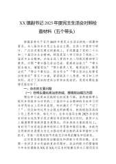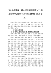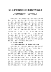 XX县委常委、县人民武装部部长2025年度民主生活会个人对照检查材料(五个带头)