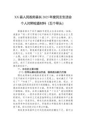 XX县委常委、县人民武装部部长2025年度民主生活会个人对照检查材料(五个带头)根据县委关于召开2025年度民主生活会的统一安排,对照“五个带头”方面要求,紧密联系个人思想和工作实际,深入查摆问题,深刻剖析根源,并提出整改措施。现作对照检查如下。一、存在的主要问题(一)在带头强化政治忠诚、提高政治能力方面作为县委常委和县人民武装部部长,我始终将政治忠诚作为立身之本,但在对标对表、知行合一上仍有差距。理论武装的深度和转化率有待提升。虽然能够坚持参加县委理论学习中心组和部党委的集体学习,但对习近平新时代中国特色社会主义思想,特别是习近平强军思想的系统性研读和领悟还不够透彻。例如,在学习党的二十届四...