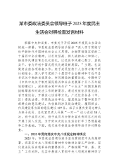 集团有限公司2025年度民主生活会领导班子对照检查材料(五个带头)根据市委和市国资委党委关于召开2025年度民主生活会的统一部署,集团有限公司领导班子紧扣会议主题,在深入开展理论学习研讨、广泛征求意见建议、坦诚进行谈心谈话的基础上,认真对照“带头强化政治忠诚、提高政治能力”等五个方面内容,深入查摆了班子存在的突出问题,深刻剖析了问题产生的根源,并明确了下一步的整改方向和措施。现将对照检查情况报告如下。一、存在的主要问题(一)在带头强化政治忠诚、提高政治能力方面班子始终将政治建设摆在首位,深刻领悟“两个确立”的决定性意义,但在对标对表更高标准时,仍发现存在一些差距和不足。一是政治判断力和敏锐性仍...