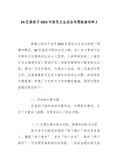XX区人民政府办公室领导班子2025年度民主生活会对照检查材料(五个带头)2根据区委关于召开2025年度民主生活会的统一部署,区政府办公室领导班子紧扣“深入学习贯彻习近平新时代中国特色社会主义思想,全面贯彻落实党的二十届三中、四中全会精神,深入贯彻落实习近平总书记重要讲话和重要指示批示精神,以打攻坚战、持久战的决心和恒心,锲而不舍落实中央八项规定精神,推进作风建设常态化长效化,以优良作风凝心聚力、真抓干,聚焦高质量发展首要任务,扎实推进中国式现代化,为实现‘十五五’良好开局奠定坚实基础”这一主题,在深入开展学习研讨、广泛征求意见建议、坦诚进行谈心谈话的基础上,认真总结了贯彻落实中央八项规定精神...