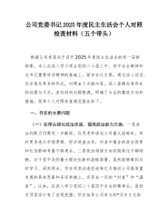 XX工业园区管委会党工委书记2025年度组织生活会个人对照检查材料(五个对照)各位同志:大家好。根据本次组织生活会的要求,会前,我深入学习了党的二十大和二十届四中全会精神,重温了《中国共产党章程》等党内法规,并与支部部分党员同志开展了深入的谈心谈话,广泛听取了意见建议。在此基础上,我紧扣党员身份本色、岗位履职实效、作风建设细节,深入查摆了自身存在的问题,剖析了问题根源,明确了整改方向。下面,我将个人对照检查情况汇报如下,请各位同志批评指正。一、存在的问题(一)在贯彻党的创新理论方面,存在学用脱节日现象一是理论学习存在“温差”。作为一名党员干部,虽然能够按时参加集体学习,但在个人自学上投入的精力...