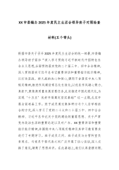 XX市委编办2025年度民主生活会领导班子对照检查材料(五个带头)根据市委关于召开2025年度民主生活会的统一部署,市委编办领导班子紧扣“深入学习贯彻习近平新时代中国特色社会主义思想,全面贯彻落实党的二十届三中、四中全会精神,深入贯彻落实习近平总书记重要讲话和重要指示批示精神,以打攻坚战、持久战的决心和恒心,锲而不舍落实中央八项规定精神,推进作风建设常态化长效化,以优良作风凝心聚力、真抓干,聚焦高质量发展首要任务,扎实推进中国式现代化,为实现‘十五五’良好开局奠定坚实基础”这一主题,扎实开展会前准备工作。班子成员通过集体研讨与个人自学相结合的方式,深入学习了党的二十大和二十届三中、四中全会精神...
