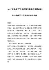 2023“以学促干” 主题教育专题学习党课讲稿:在以学促干上取得实实在在成效