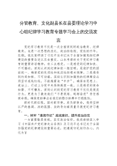 分管教育、文化副县长在县委理论学习中心组纪律学习教育专题学习会上的交流发言