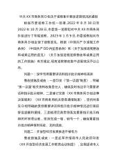 中共XX市商务局D组关于巡察集中整改进展情况的通报根据市委巡察工作统一部署,2022年8月30日至2022年10月28日,市委第一巡察组对中共XX市商务局D组进行了常规巡察。2023年1月9日,市委巡察组向市商务局D组反馈了巡察意见。根据《中国共产D巡视工作条例》《中国共产DD内监督条例》和《关于加强巡视整改和成果运用的意见》《关于加强巡视巡察整改和成果运用的工作措施》有关规定,现将巡察整改集中进展情况予以公布。问题一:深学笃用重要讲话和指示批示精神有差距整改措施及成效:一是印发《“第一议题”制度》,明确“第一议题”相关资料收集责任人,确保及时传达学习重要讲话和指示批示精神。二是修订完善《XX...