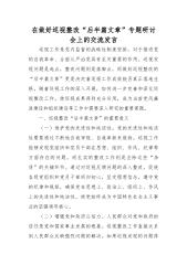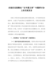公司纪委书记在集团深化中央巡视整改推进会上的汇报发言为贯彻落实党的XX大精神和二十届中央纪委三次全会精神,根据集团关于加强中央巡视整改工作的相关要求,公司结合自身实际,打好“责任牌”“落实牌”“机制牌”,凝聚监督合力,深化中央巡视整改工作。一、打好“责任牌”,找准监督切入点1.压实主体责任公司党委制定《关于中央巡视反馈意见的整改落实方案》、清单、台账,具体围绕39个问题,制定整改措施94项;成立中央巡视整改工作领导机构和工作机构,由公司党委书记、董事长任整改领导小组组长,下设整改办公室和整改监督办公室;召开中央巡视反馈意见整改工作推进会暨中央巡视整改工作领导小组会议。2.压实监督专责公司纪委立...