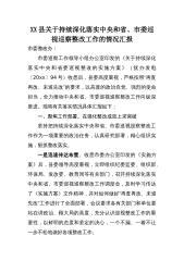 XX县关于持续深化落实中央和省、市委巡视巡察整改工作的情况汇报市委整改办:市委巡察工作领导小组办公室印发的《关于持续深化落实中央和省委巡视整改的实施方案》(抚办发电〔20xx〕94号)收悉后,县委高度重视,严格按照“再査再改、未巡先改”的要求,以高度的政治自觉、强烈的使命担当,全力推动中央和省、市委巡视巡察整改工作向纵深推进。现将有关落实情况具体汇报如下:一、聚焦工作部署,在强化整改成效上求突破坚持把持续深化落实中央和省、市委巡视巡察整改工作作为一项重要的政治任务,认真研究部署,精心组织实施,狠抓整改落实。一是迅速传达布置。收悉市委办公室印发的《实施方案》后,县委领导高度重视,立即组织纪委监委...