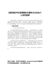 法院党组书记在中央和兵团巡视整改专题民主生活会个人发言提纲按照市纪委机关、市党委组织部《关于认真开好中央和X巡视整改专题民主生活会的通知》要求,通过深化学习研讨、广泛征求意见、开展谈心谈话、深入一线调研等环节,紧密结合个人思想、学习和工作实际,逐个对照、逐条查找、逐项梳理,深入进行党性分析,深刻挖掘问题根源,形成了个人发言提纲。现做如下对照检查,请同志们批评指正。一、查摆的主要问题(一)中央第X巡视组反馈问题方面1.在贯彻落实习近平新时代中国特色社会主义思想和新时代党的治X方略方面。一是深钻细研还不够。学习贯彻习近平新时代特色社会注意思想特别是习近平总书记关于新X和X工作的重要讲话和重要指示批...