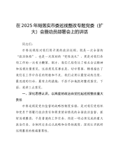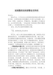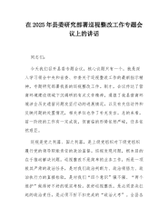 在XX县委研究部署巡视整改工作专题会议上的讲话(精品)同志们: 今天我们召开县委专题会议,核心议题只有一个,就是深入学习领会中央和省委、市委关于巡视整改工作的最新指示精神,专题研究部署我县的巡视整改工作。刚才,会议传达了营商环境建设领域下沉调研的有关文件精神,通报了我县营商环境涉企历史遗留问题攻坚行动的进展情况,以及有关信访件和反映问题的处置情况,相关单位也作了补充发言。总的来看,前一阶段的工作有一定成效,但面临的形势依然严峻,任务依然艰巨。 巡视是党之利器、国之利器,是上级党组织对下级党组织履行党的领导职能责任的政治监督。巡视发现问题,根本目的在于推动解决问题。巡视整改不是简单的业务工作...