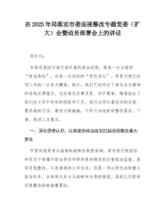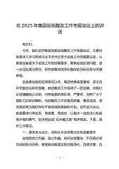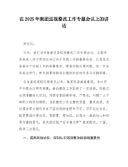 在XX集团巡视整改工作专题会议上的讲话同志们:今天,我们召开集团党委巡视整改工作专题会议,主要任务是深入学习贯彻习近平总书记关于巡视工作的重要论述,认真落实省委关于巡视工作的部署要求,聚焦巡视反馈问题,进一步压实政治责任,研究部署持续深化整改的目标任务与关键举措。自省委巡视组反馈意见以来,集团党委高度重视,多次召开专题会议研究部署,推动整改工作取得了一定进展。但我们必须清醒地认识到,对照省委的高标准、严要求,对照广大干部职工的深切期盼,当前整改工作在整改质量、整改成效、责任落实等方面仍存在不容忽视的差距和不足。召开此次会议,就是要进行再动员、再部署、再加压,以背水一战的决心和刮骨疗毒的勇气,坚...