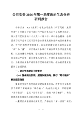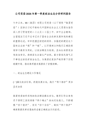 公司党委2026年第一季度意识形态领域分析研判报告