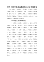 目录一、技巧1.怎样撰写政治生态分析报告1二、文件2.黄石市委关于开展政治生态分析研判工作的意见3三、报告3.简阳市规划和自然资源局2021年上半年政治生态建设情况的研判报告64.保山市广播电视局党组2020年下半年政治生态研判报告145.隆阳区乡村振兴局2022年上半年政治生态分析研判情况报告196.区环城生态区建设发展中心党组2022年上半年政治生态分析研判报告25四、经验7.湖北省全面推进政治生态分析研判工作288.贵州省系统化常态化开展政治生态分析研判309.黄石市坚持科学分析精准研判营造山清水秀政治生态3510.黄石市突出政治监督持续深化政治生态分析研判3811.齐齐哈尔市聚焦精准“...