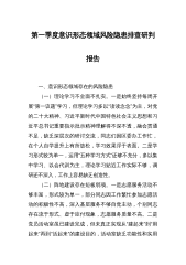 2023年第二季度意识形态领域分析研判报告今年以来,在区委、区政府正确领导下,在区委宣传部的帮助指导下,我街道深入贯彻落实党的二十大精神、习近平新时代中国特色社会主义思想、省委xx届三次精神、市委xx届三次全会精神、区委xx届五次全会精神以及扫黑除恶精神,深入开展“大学习、大讨论、大调研”活动,大力实施乡村振兴、社区发展治理等工作,全面提升服务质量,弘扬社会主义核心价值体系,切实有效地抓好了全街道的意识形态工作,根据区委宣传部有关要求,现将有关情况汇报如下:一、精心部署安排,强化责任担当街道党工委高度重视意识形态工作,把意识形态工作纳入综合目标考评,与业务工作同部署、同落实、同检查同考核。认真...