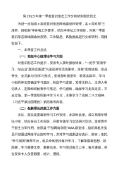 2023年上半年意识形态工作分析研判报告范文意识形态工作是党的一项极端重要的工作,事关党的前途命运,事关国家长治久安,事关民族凝聚力和向心力。今年以来,x党委坚持以***新时代中国特色社会主义思想为指导,认真贯彻落实***关于意识形态工作的决策部署和省市区委工作要求,牢牢把握正确政治方向,夯实主体责任、强化思想引领、用好宣传阵地、突出舆论推动和精神激励作用,意识形态领域工作方向明、思路清、措施实,总体平稳良好,主思潮积极向上,主旋律亢进响亮,正能量强劲有力,牢牢掌握了意识形态工作的领导权、主动权、管理权和话语权。为推动x各项工作高质量推进提供坚实的思想保障。现将2023年上半年本领域意识形态工...