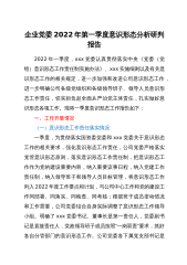 街道2023年第二季度意识形态领域分析研判报告范文xx严格落实《中国GC党宣传工作条例》和《党委(党组)意识形态责任制实施细则》有关要求,深入学习XXX新时代中国特色社会主义思想和党的贰拾DA精神,紧紧围绕x党工委工作大局和中心任务,突出意识形态领域主体责任,压实意识形态工作责任制,着力思想引领、舆论推动和精神激励,扎实做好意识形态各项工作,现对2023年第二季度意识形态工作分析研判如下:一、现阶段意识形态领域状况和存在问题(一)提高政治站位,强化主体责任落实。x党工委自觉把意识形态工作摆在重要位置,二季度党工委会议专题研究意识形态工作,并召开了x2023年第二季度意识形态分析研判工作会议,对...