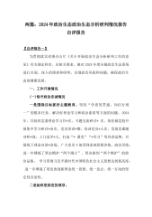 2024年政治生态政治生态分析研判情况报告自评报告范文稿(两篇)供借鉴【自评报告一】市民政局党组在市委的正确领导和市纪委监委的监督指导下,认真学习党的二十大精神和习近平总书记重要讲话精神,进一步加强党风廉政建设和反腐败工作,突出新思想引领、政治建设统领、正风肃纪、政治文化熏陶,政治生态风清气正、持续向善向好。现将自我评价报告如下:一、基本情况市局共有内设科室*个、局属事业单位*个。现有党组成员*人,机关行政编制*人。主要职责*等方面。二、政治生态主要特征一是积极推动全面从严治党。结合主题教育,通过多种形式,认真学习贯彻习近平中国特色社会主义思想,坚持把落实中央和省委、市委的决策部署列入党组会重...