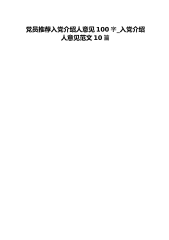 党员推荐入党介绍人意见100字_入党介绍人意见范文10篇很多读者对写党员推荐入党介绍人意见100字_入党介绍人意见范文10篇感到非常苦恼吧?编辑与大家分享几篇《党员推荐入党介绍人意见100字_入党介绍人意见范文10篇》美文汇总,欢迎大家借鉴,一起仿效,你也可以在此搜索更多与《党员推荐入党介绍人意见100字_入党介绍人意见范文10篇》相关的范例。入党介绍人要定期向党组织汇报对被介绍人的培养、教育和考察情况。那么关于入党介绍人意见该怎么写呢?下面是小编给大家整理的党员推荐入党介绍人意见100字_入党介绍人意见范文10篇,欢迎大家借鉴与参考,希望对大家有所帮助。入党介绍人意见范文1第二介绍人意见同意...