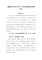 【合编2篇范文】在党组理论学习中心组专题学习2025年中央一号文件研讨会上的发言稿【发言稿一】2025年中央一号文件《关于进一步深化农村改革扎实推进乡村全面振兴的意见》的发布,充分体现了以习近平同志为核的党中央对“三农”工作的高度重视。作为一名分管农业农村工作的领导干部,要认真学习领会文件精神,切实把思想和行动统一到党中央决策部署上来,奋力推动乡村全面振兴。一是深刻领会文件精神,坚定不移推进农业农村现代化。文件强调,实现中国式现代化,必须加快推进乡村全面振兴。要深刻认识到,当前我国发展进入战略机遇和风险挑战并存的新阶段,越是应对风险挑战,越要夯实“三农”工作基础。要以更大的决心、更明确的目标、...