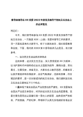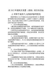 在2022年度民主党委(党组)民主生活会上对班子成员个人的批评参考意见根据常委会2022年度民主生活会的安排和XX委巡回督导组刚才提出的意见建议,认真听了大家的个人检视发言后,结合主要分管的工作和个人的所学所思所感,对各位班子提出如下批评意见。一、对XXX同志的批评意见:1.解决群众急难愁盼问题不及时,城市更新推进力度不强,尤其是近期降雨天气增多,XXX城雨水排污短板问题。2.对经济运行的系统谋划不深入,如何抢抓政策机遇推动高质量发展举措不够精准,市场主体培育量、部分经济指标未达到预期。二、对XXX同志的批评意见:1.建言献策的精准性不够强,在围绕“四新”主攻“四化”方面的调研不够深入,为XX...