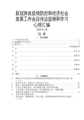 新冠肺炎疫情防控和经济社会发展工作会议传达提纲和学习心得汇编2020年2月目录一、传达提纲11.广西壮族自治区..................................................112.新疆维吾尔自治区................................................513.浙江省..........................................................714........................................................国家邮政局1015.....