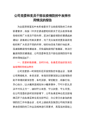 关于在打赢疫情防控阻击战中积极主动履职有效发挥作用的报告新冠肺炎疫情发生以来,我们坚决贯彻落实习近平总书记关于打赢疫情防控阻击战重要指示精神和党中央决策部署,深入贯彻落实全国全市组织部门电视电话会议精神按照市委组织部的工作要求和区委统一安排,迅速行动、周密组织,团结带领全区各级党组织和广大党员干部强引领筑堡垒、亮身份当先锋、扛责任作表率,为打赢疫情防控阻击战提供坚强组织保障。一、强化使命责任,着力展现组织部门政治担当坚持把疫情防控工作作为当前最重要的工作来抓,第一时间转拨划拨党费*余万元支持疫情防控工作,第一时间成立*个临时党支部,以实际行动主动在打赢疫情防控阻击战中体现组织担当、彰显组织作为...