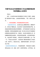 市委书记在全市统筹推进疫情防控和经济社会发展工作会议上的讲话同志们:今天我们召开会议,目的是动员全市上下把思想和行动统一到总书记重要讲话和中央、省里的部署要求上来,毫不放松抓紧抓实抓细疫情防控工作,主动作为有序有力有效推动经济社会发展,奋力夺取疫情防控和实现经济社会发展目标“双胜利”。下面,我讲三个方面意见:一、客观看待工作成效,切实增强统筹推进疫情防控和经济社会发展的信心决心这次新冠肺炎疫情,是新中国成立以来在我国发生的传播速度最快、感染范围最广、防控难度最大的一次重大突发公共卫生事件。疫情发生以来,我们坚决贯彻习近平总书记重要指示和中央、省部署要求,坚持把人民群众生命安全和身体健康放在第一...