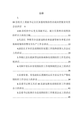 目录1.XX市委书记王刚新冠肺炎疫情防控电视讲话32.副市长、市政府党组成员范宇新在全市新冠肺炎疫情防控工作视频会议上的讲话...................................................113.市委常委、XX高新区党工委书记罗武侠同志在疫情防控工作会上的讲话...............................................................154.市委常委、副市长陈晖同志在全市社区疫情防控工作视频会上的讲话.........................................................