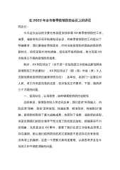 在2022年4月份区疫情防控工作领导小组暨指挥部第一次会议上的讲话同志们:刚才,听取了全区近期疫情防控工作情况的汇报及下步工作安排。下面,按照省疫情防控指挥部《关于落实好我省常态化疫情防控措施和做好五一假期期间疫情防控的通知》文件精神,我就如何做好“五一”假期期间全区疫情防控重点工作讲几点意见。当前,我区疫情防控形势持续向好,但省外输入风险和本地反弹的隐患依然存在。“五一”期间,将会出现人员大规模流动和聚集等情况,疫情防控的风险和难度将会加大。大家都知道,前几天**又出现了复阳的病例,这说明疫情反弹的风险还是客观存在的。因此,各单位、各街镇决不能盲目乐观、心存侥幸,更不能有厌战情绪、麻痹大意。...
