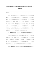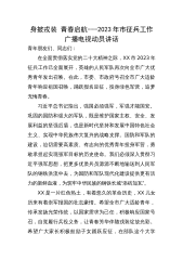 在全市征兵工作推进暨新兵教育动员会议上的讲话同志们:今天,我们在这里召开全市征兵工作推进暨新兵教育动员会议,主要任务是深入学习贯彻强军思想,全面落实党中央、国务院、中央军委关于征兵工作的决策部署,总结上半年征兵工作成效,分析当前面临的形势任务,部署下半年重点工作,进一步统一思想、凝聚共识,推动全市征兵工作再上新台阶,为建设巩固国防和强大人民军队输送更多优质兵员。参加今天的会议有市委常委、市人大常委会、市政府、市政协相关领导,市征兵工作领导小组成员单位负责同志,各县(市、区)征兵办公室主任及业务骨干,各乡(镇、街道)武装部长,以及部分即将入伍的新兵代表。刚才,*县征兵办公室、*区武装部、市公安局...