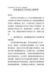目录1.在全县征兵工作会上的讲话......................................42.在全县征兵宣传动员会上的讲话..................................83.在全县征兵工作电视会上的讲话.................................114.在全县征兵动员会上的讲话.....................................155.在全区征兵工作会议上的讲话...................................176.在全区征兵工作会上的讲话...........................