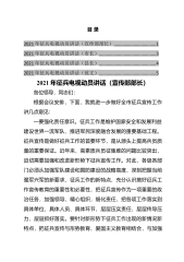 同志们:昨天,我们集中收听收看了全国、省、*市征兵工作电视电话会议。刚才,人武部*部长总结了去年征兵工作完成情况,部署了今年征兵工作任务。各级、各有关部门要认真学习领会,抓好贯彻落实。下面,我讲三点意见。一、要抬高政治站位,强化使命担当征兵工作关系国家的事业发展,关系国防和军队建设全局,是地方党委、政府和兵役机关共同的政治性任务。去年,经过各单位(部门)的共同努力,圆满完成了上级赋予我区的征兵工作任务,但也要清醒看到,高质量兵员征集比例不高、退兵人数过多等问题仍然突出,征兵形势不容乐观。今年实行春季和夏秋季一年两次征兵,各级各部门必须抬高站位、深化认识、以更大的视角审视征兵工作,以鲜明的政治态...