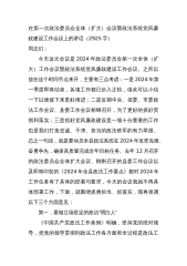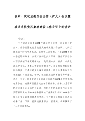 在第一次政法委员会全体(扩大)会议暨政法系统党风廉政建设工作会议上的讲话同志们:今天这次会议是2024年政法委员会第一次全体(扩大)工作会议暨政法系统党风廉政建设工作会议。之所以放在这个时间节点来开,主要有三点考虑:一是2024年第一季度即将结束,各项工作都已步入正轨,借此可以小结一下以便接下来更好推进;二是近期中央、省委、市委政法工作会议、县委工作会议相继召开,为了更好的抓好贯彻和落实;三是抓好党风廉政建设是一项十分重要的工作也是我们打造忠诚、干净、担当的政法铁军的有力举措。总之一句话,就是要动员全县政法系统在2024年攻坚克难、奋勇争先,确保高质量完成全年目标任务。去年12月召开的政法委员...