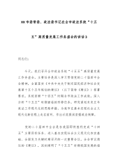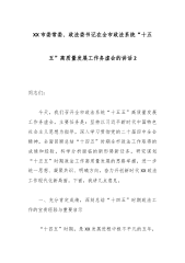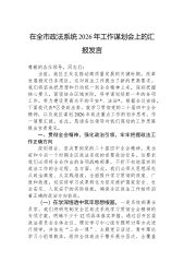 XX市委常委、市委政法委书记在全市政法系统全面从严治党暨队伍建设工作会议上的讲话同志们: 今天我们召开全市政法系统全面从严治党暨队伍建设工作会议,主要任务是深入学习贯彻党中央全面从严治党重大部署和习近平总书记关于全面从严治党、政法队伍建设的重要论述,全面总结2025年全市政法系统全面从严治党和队伍建设工作成效,分析当前面临的形势任务,研究部署2026年重点工作,进一步统一思想、凝聚共识、压实责任,以纵深推进全面从严治党的实际成效,锻造新时代过硬政法铁军,为我市服务保障“十五五”规划开好局、起好步提供坚强政法保障。 刚才,会议通报了2025年全市政法队伍纪律作风情况,市高院、市检察院、市公安...