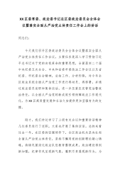 XX区委常委、政法委书记在区委政法委员会全体会议暨落实全面从严治党主体责任工作会上的讲话同志们: 今天我们召开区委政法委员会全体会议暨落实全面从严治党主体责任工作会议,主要任务是深入学习贯彻习近平总书记关于党的自我革命的重要思想,全面落实二十届中央纪委五次全会、中央和省委市委政法工作会议以及省纪委、市纪委全会精神,总结工作、分析形势,对今年全区政法系统全面从严治党工作进行再动员、再部署,并通过政法委员述职和集体谈话,进一步压紧压实管党治警政治责任,以全面从严治党的新成效引领保障政法工作现代化,为XX区高质量发展和长治久安提供更加坚强有力的支撑。 刚才,我们传达学习了上级有关会议和重要讲话精...