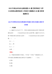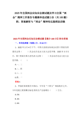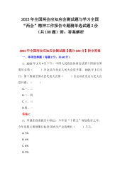 2025年全国两会应知应会测试题及学习全国“两会”精神工作报告专题测单选试题2份(共100题)附:答案解析与“两会”精神传达提纲宣讲稿