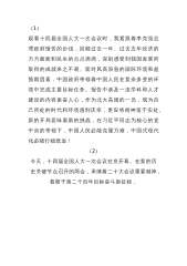 2025年全国两会应知应会测试题及学习全国“两会”精神工作报告专题测单选试题2份(共100题)附:答案解析与“两会”精神传达提纲宣讲稿2025年全国两会应知应会测试题【满分100分】附全答案一、单项选择题(每题2分,共60分)1、2025年3月4日下午,中国人民政治协商会议第十四届全国委员会第()次会议在北京人民大会堂开幕。2025年3月5日,第十四届全国人民代表大会第()次会议在北京人民大会堂开幕。()A.一、二B.二、四C.三、三D.四、一答案:C2、李强在政府报告中指出,今年是“十四五”规划收官之年。今年发展主要预期目标是:国内生产总值增长()左右。A.5%B.4%C.6%D.3%答案:...