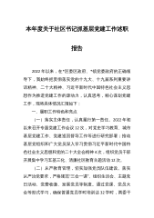乡镇(街道)机关支部2022年抓基层党建工作述职报告2022年以来,在镇党委、政府的正确领导下,XX镇机关支部始终坚持以习近平新时代中国特色社会主义思想为指导,深入贯彻落实党的十九大和十九届历次全会精神,迅速学习传达贯彻党的XX大精神,深刻感悟“两个确立”的决定性意义,增强“四个意识”、坚定“四个自信”、做到“两个维护”,持续深化全面从严治党,深入落实全面从严治党“九个从严”要求,持续推进党风廉政建设,提高机关支部的凝聚力和向心力,充分发挥党支部的战斗堡垒作用。根据组织部《关于开展2022年度党组织书记抓基层党建工作述职评议考核的通知》的要求,现述职如下:(一)在“思想同心”上做文章,发挥党建...