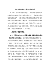 区政府党组基层党建工作述职报告2023年,在区委的坚强领导下,我深入学习贯彻习近平新时代中国特色社会主义思想和党的二十大精神,牢牢把握正确政治方向,认真落实政府党组管党治党主体责任和政府系统党建第一责任人的责任,着力加强党组自身建设充分发挥区政府党组战斗堡垒和党员领导干部先锋模范作用,推进全区经济社会高质量发展。现将本人履行抓基层党建工作职责情况报告如下,请予评议。一、履职工作特色和亮点(一)把牢政治方向,全面落实新时代党的建设总要求。一是始终强化政治建设。坚持把党的政治建设摆在首位,严守政治纪律和政治规矩,政府系统各级干部切实增强“四个意识”、坚定“四个自信”、做到“两个维护”,让习近平新时...