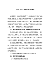 X乡2023年政府工作报告主要工作任务分解立项督查清单落实情况报告县委督查组:根据《2023年上半年重点工作专项督查方案》要求,现将X乡2023年政府工作报告主要工作任务分解立项督查清单落实情况汇报如下:一、2023年上半年工作开展情况(一)稳增长促转型,增强发展后劲。坚持稳中求进工作总基调和高质量发展要求,全面贯彻落实省州县保持经济平稳增长系列政策措施,全乡经济保持平稳健康发展。2023年1-5月,完成一般公共预算收入1324万元,增长22.3%;完成规模以上固定资产投资8860万元,完成全年目标任务数44000万元的20.13%;完成招商引资5546万元,占县下达任务数25000万元的22...